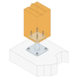 2. Fixer cette platine au poteau à l’aide de tirefonds LAG (pré-perçage nécessaire).
