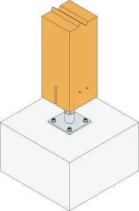 - Connexion bois sur support rigideSur poteau : 2Ø8 (broches STD ou boulons) ; sur béton : 4Ø12 (goujons WA ; tige filetée)