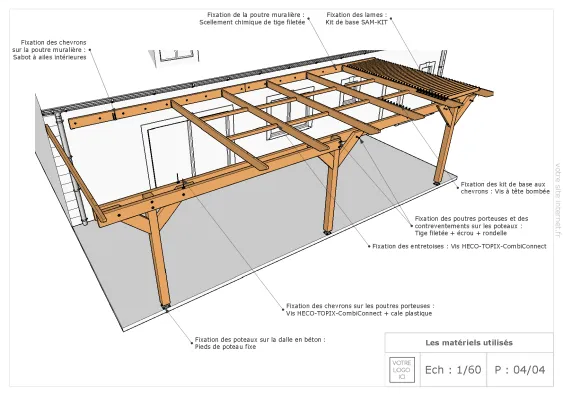- Le calcul de la structure de votre pergola (dimensionnement des éléments en bois). Il s’agit de la prestation : la vérification des plans