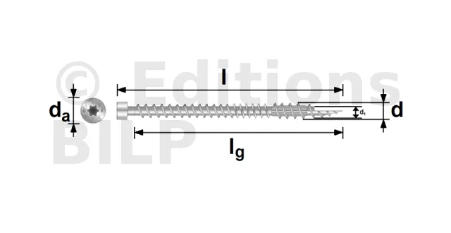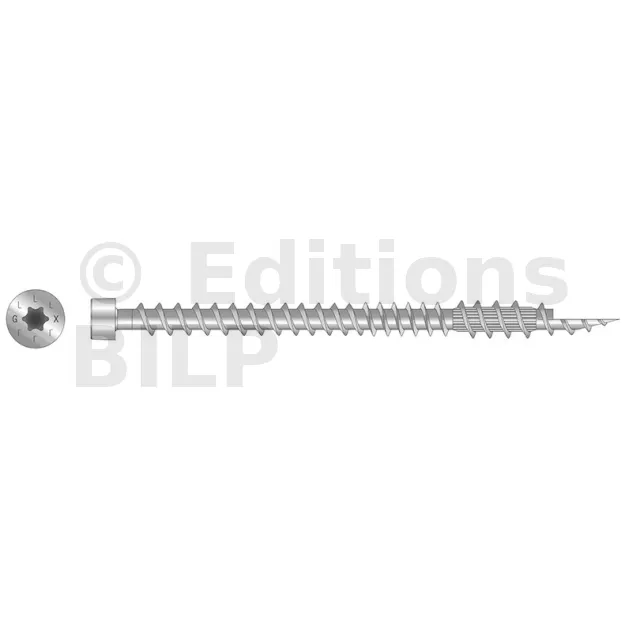 - Tête cylindrique : diminue l’éclatement du bois et rend la fixation invisible dans le bois,
