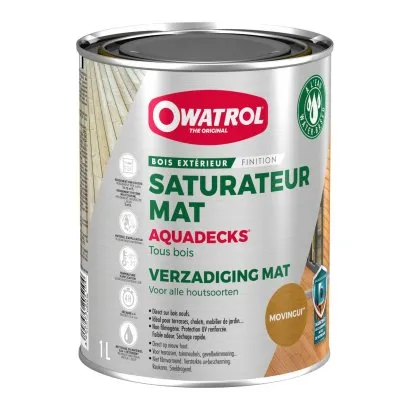 - Si vous souhaitez effectuer un changement de teinte ou si le traitement en place est trop usé, déshuiler avec le système AQUANETT®* + NET-TROL®*. Puis procéder à une nouvelle saturation avec l’AQUADECKS® selon le mode opératoire ci-dessus.
