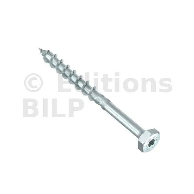 HECO-TOPIX-plus , tête hexagonale combinée, tête hexagonale + T-Drive, filet partiel, zingué blanc, A3K - Réf. 61497